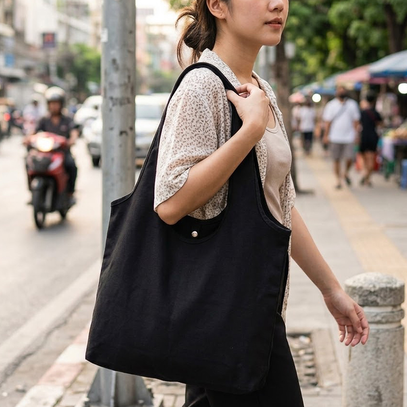 กระเป๋าผ้าคือ “ป้ายโฆษณาที่เดินได้” ลองนึกภาพดูนะ ถ้าคุณทำเสื้อแจก คนอาจจะใส่แค่ตอนนอนหรืออยู่บ้าน แต่ถ้าเป็นกระเป๋าผ้าสวยๆ ทรงดีๆ ลูกค้าจะถือไปเดินห้าง ไปซูเปอร์มาร์เก็ต หรือไปคาเฟ่ นั่นหมายความว่าโลโก้แบรนด์ของคุณจะไปปรากฏอยู่ในสายตาคนนับร้อยนับพันคนแบบเนียนๆ